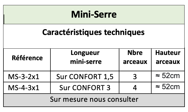 Cette mini-serre escamotable s’adapte à nos potagers de la gamme CONFORT et PRATIQUE de 1,5 m² (rectangle ou carré) et de 3 m².